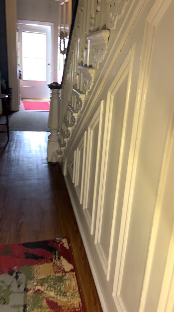 The Mintwood house was built in in 1910. It’s half of a duplex (I only own one half. The other half is owned by a landlord, and he’s split that unit into 3 apartments). You’ll see from the photos that it is an interesting building. A typical “worker’s house” in this neighborhood is 1200-1400 sq ft, and the rooms are typically 14×14 with 8′ ceilings and a very cramped attic. This building is literally twice as big. It’s 2800 sq ft, 3 stories high – and those stories are TALL. The first two floors have 11′ ceilings, and the third floor has a 10′ ceiling. It was clearly built for someone of significant means. (It even features a “maid’s stairs” in the back!)