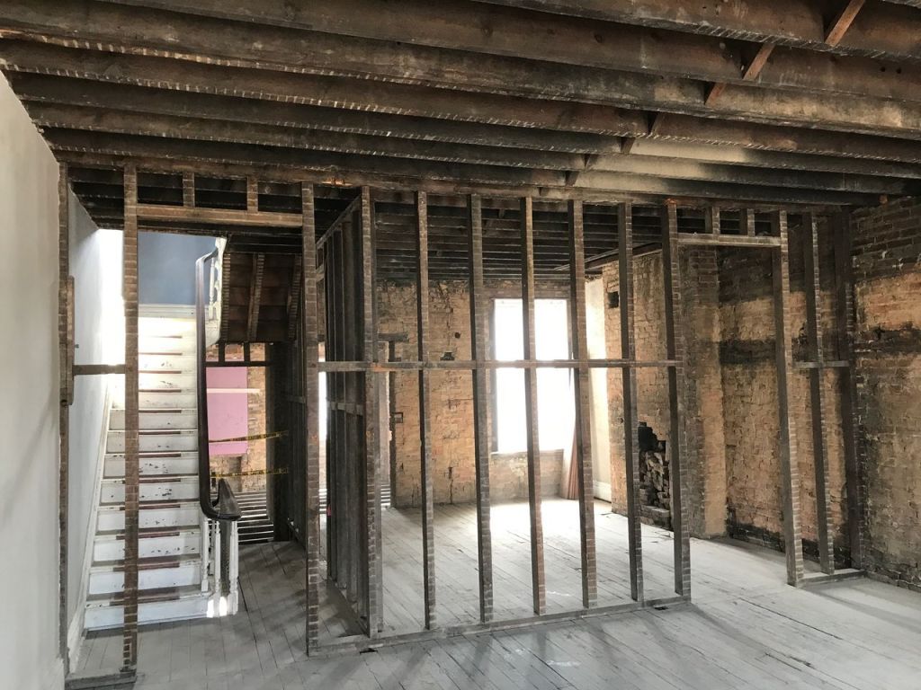 I used Axel Demolition to do all of the work. They had a crew of 5 people working for about 19 days to complete the demolition. I met them initially when they were working on a house nearby. They were removing the brick front facade due to some bowing issues. What I noticed within a few minutes was that everyone was working quickly, but very carefully. A “normal” demo crew might start swinging big sledge hammers at the facade, but these guys were really “deconstructing” more than “demolishing”. I liked that level of care. That approach is more labor intensive, but in the long run, it’s more cost effective. They’re able to leave a very neat building for the trades that follow. The math is pretty simple- demolition crews are a lot less expensive per hour than carpenters or drywall crews. So, if I pay the demo crew to do a really good job, I’m saving money that I don’t have to pay the drywall crew later.
