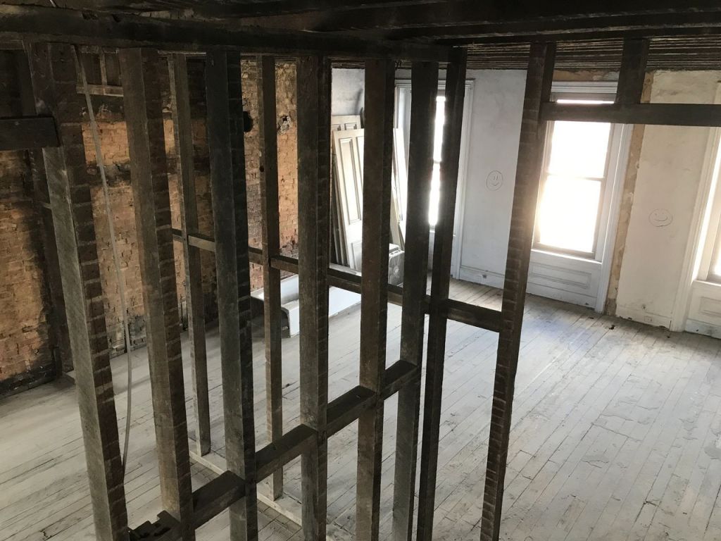 So what did they do? They pulled the plaster and lath off the studs/ brick where I requested it. They also removed all of the old wiring- every bit of knob and tube (and BX and Romex), every switch, outlet, etc.- it’s all gone. They removed the old plumbing and demolished the bathroom, including the vent stacks (as those will be relocated). they pulled out every single fastener on the walls they cleaned- every nail, screw and staple is gone. Where we cut plaster, there’s a very neat cut line and they’ve considered how the sheetrock will join the existing wall. This is all important. If they left behind fasteners, then when the sheetrock goes up, the errant screw will punch through the sheetrock. Likewise, a rough edge would need to be cleaned up by the next crew before they can do their job. By doing a great job with this phase, it makes it so much easier for the trades that follow.