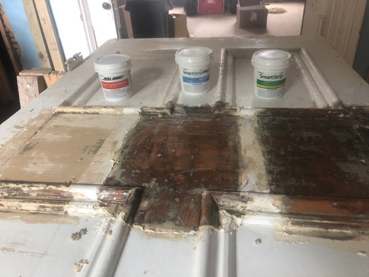 - Finish Carpentry I started running a test on the paint strippers this week. Looks like two products do a pretty good job with the various layers of paint we have. I’m going to run one more test just to verify and then we’ll start ordering by the 5-gal. bucket. More work for Team Grey!