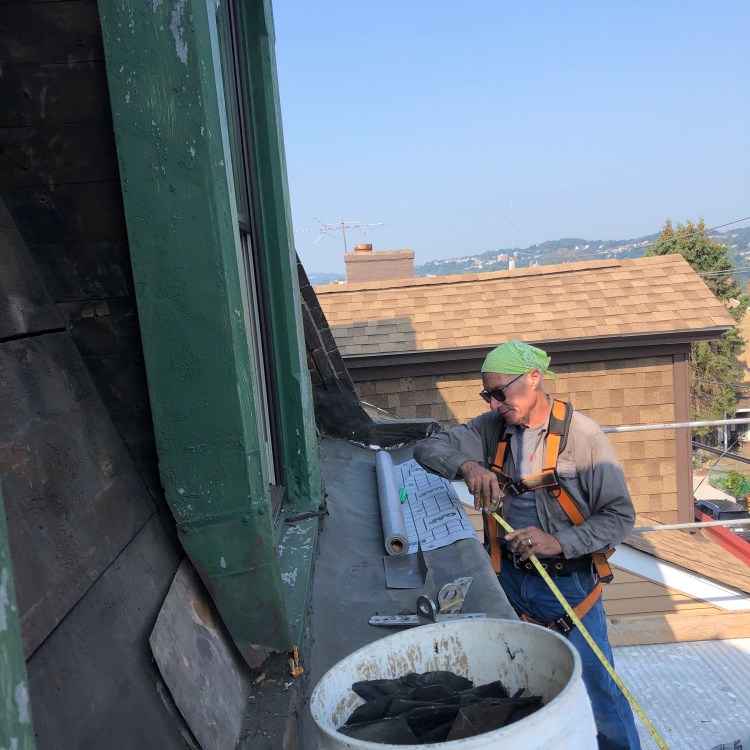 rear mansard, on a 40′ ladder. No thanks- not me.