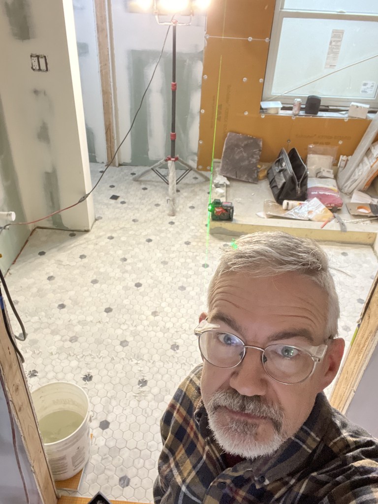 - I laid the tile in the master bathroom. Process took quite a while, but the result seems acceptable.