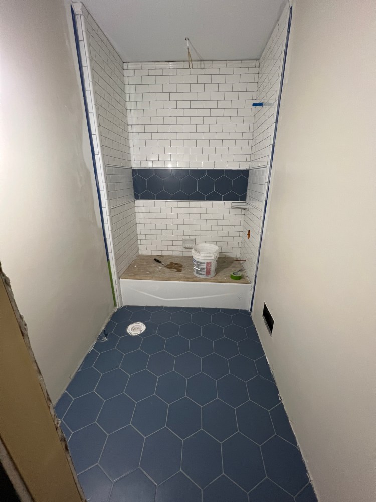 - All tile work on third floor is done and fully grouted.