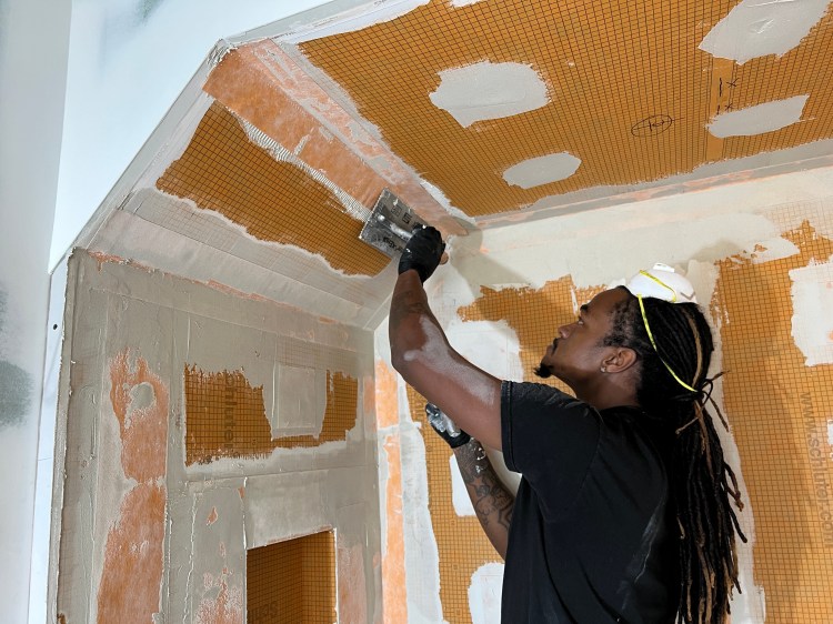 - We started tile work on the second floor guest bathroom. Paused briefly until we get some additional Schluter components.