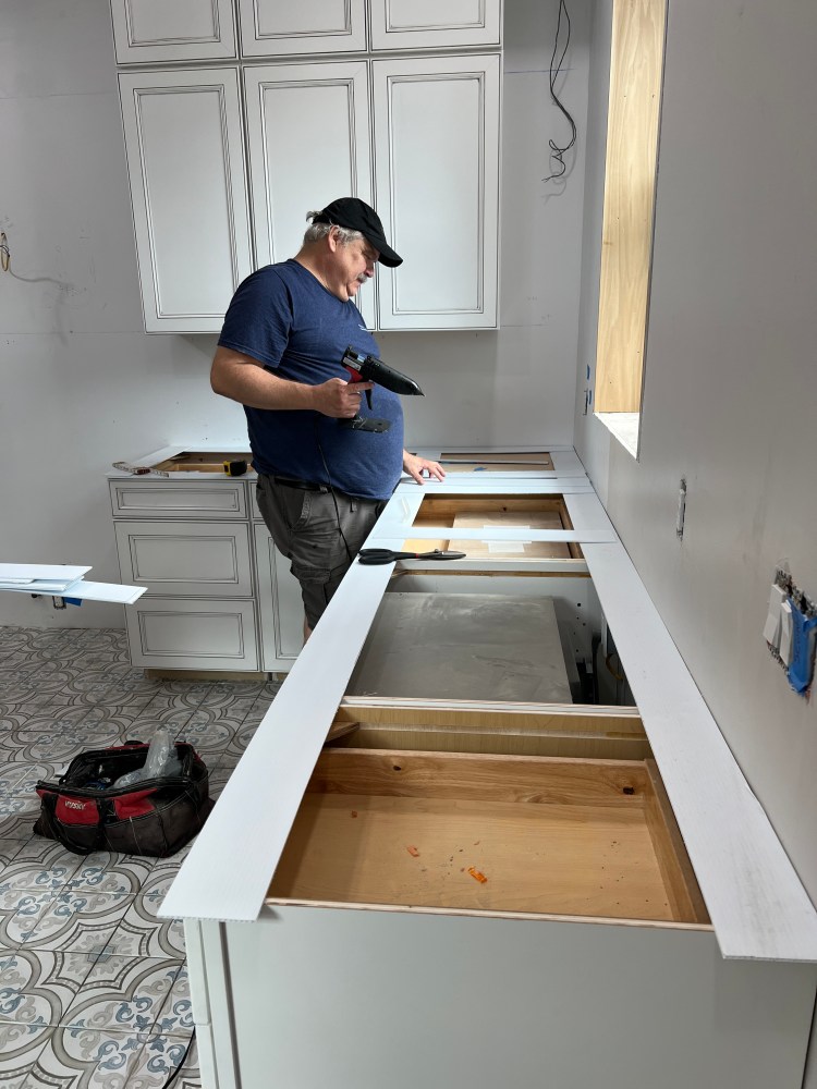 - Install kitchen countertops (partial).