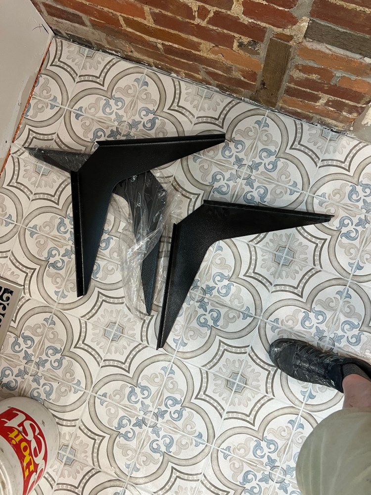 - Granite countertops in kitchen- partial installation. They installed the island and the large section of the perimeter counters. Obviously they could not do the last piece of the perimeter as we’re missing one cabinet. I was underwhelmed by the brackets they brought (they looked like stamped parts from an office desk) so we rejected those. Thanks to Barrett, we’ve sourced new brackets from an online source. They’ll take about 4 weeks to deliver, but I think they’re a lot more in keeping with what we want to do.