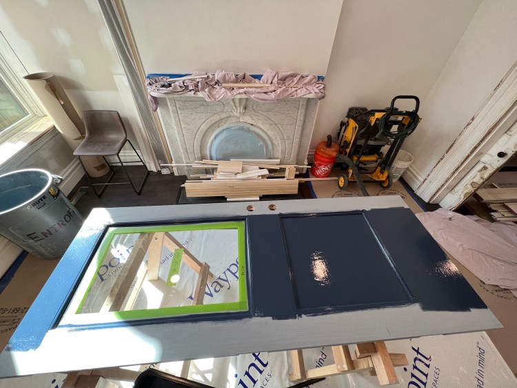 • Kitchen/ back door painted and installed. Powder room and basement doors also installed.