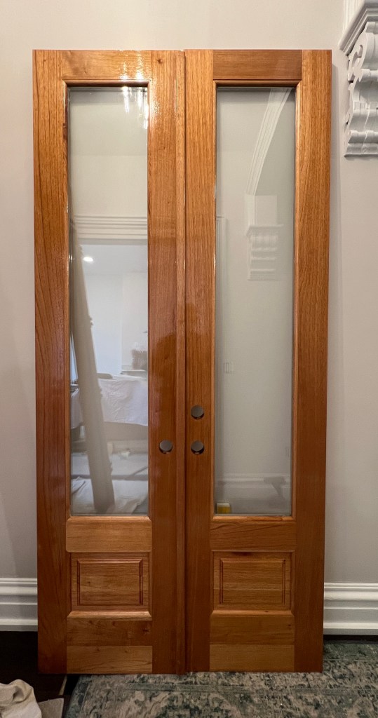 - I finished the varnish on the entryway doors. The jambs need to be finished, then it’s ready for installation. However, it will need to be coordinated with a break in the weather, because I need to repair the front steps at the same time that I do the door installation. Not sure how that will slot in against the Duncan St issues, which are more time-critical.