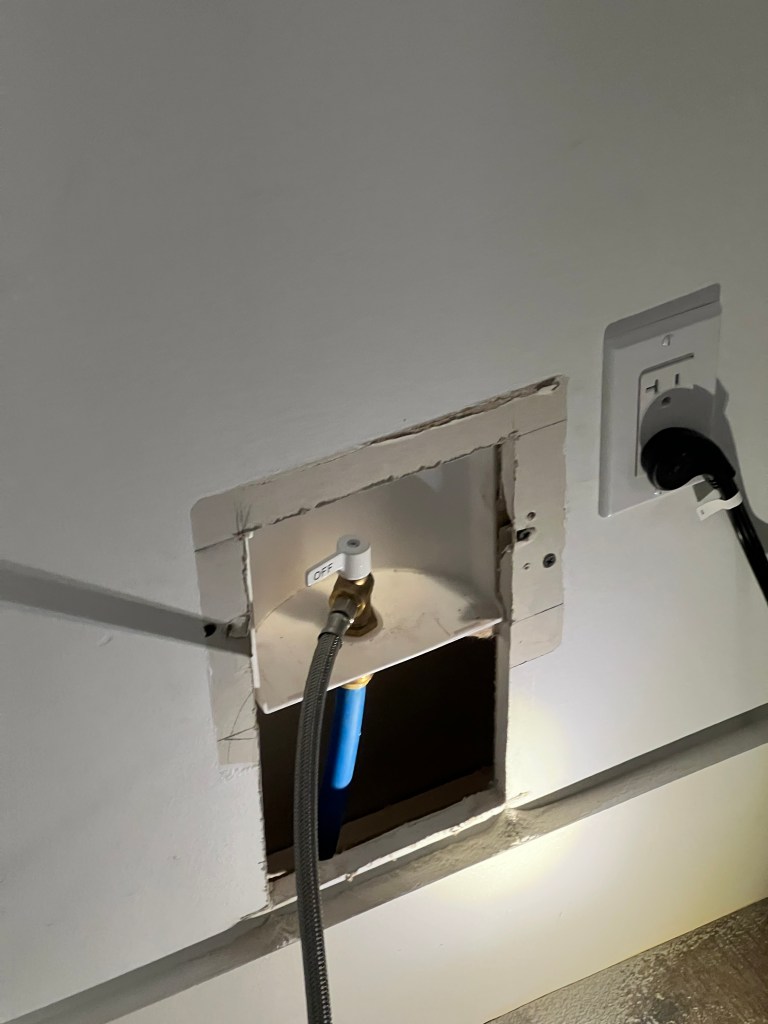 This week I’m focusing mostly on plumbing- primarily setting finished plumbing (put the toilet in place, connect the sinks, etc.). Since this is Tuesday, I’ll preview that yesterday I found a leak in the wall behind the fridge, so I cut open the drywall and repaired it. We have a plumbing inspection scheduled for 1/17.