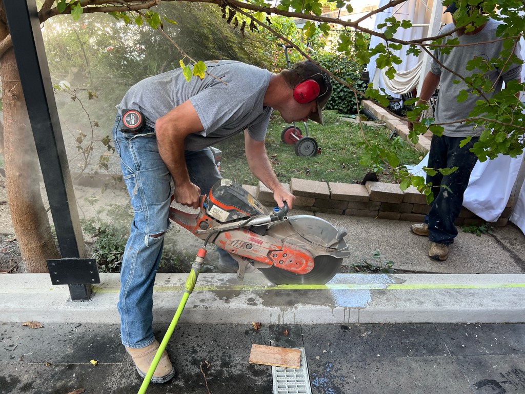 - The neighbor who was complaining about the concrete curbing was pretty insistent that we remove the curbing, so we did. The team came out and cut the curb and we chiseled away the concrete below the limit of what the saw could do. It isn’t how I would have chosen to do it, but he was insistent, so that’s what he gets.